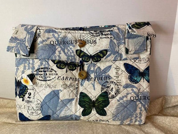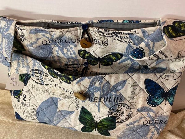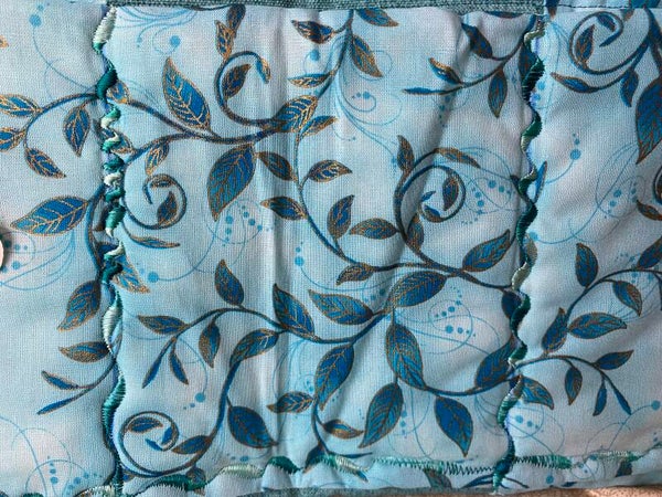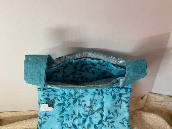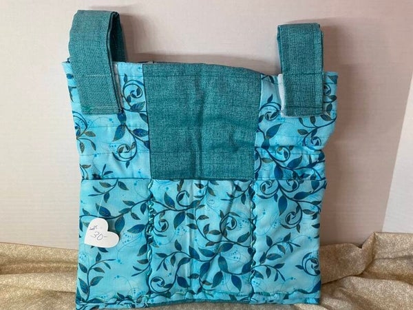 Quilted bags that hang on the front of a adult walker, each is a one of a kind.